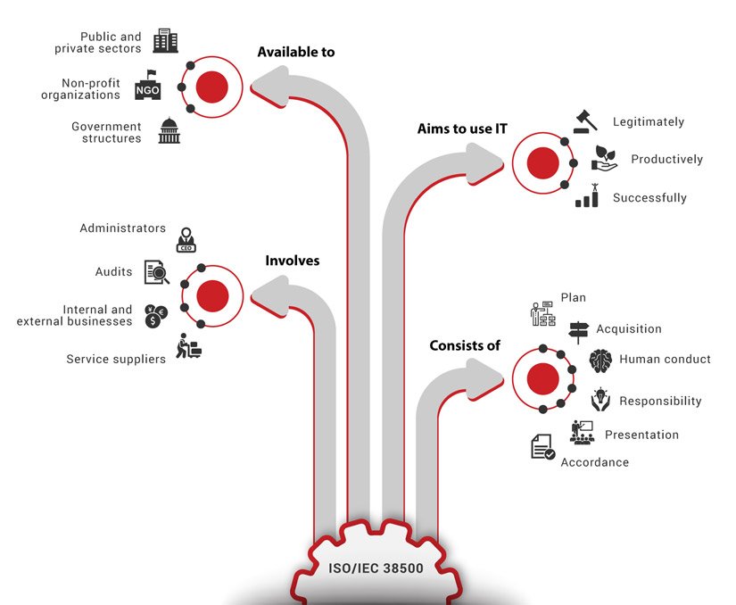A ISO/IEC 38500 auxilia os órgãos governamentais a garantir que o uso de TI contribua positivamente para o desempenho da organização. Portanto, ao cumprir os requisitos da ISO/IEC 38500, as organizações são capazes de monitorar o uso de TI, garantir a continuidade e a sustentabilidade dos negócios, alinhar a TI com as necessidades de negócios e garantir a implementação e operação apropriadas dos ativos de TI.